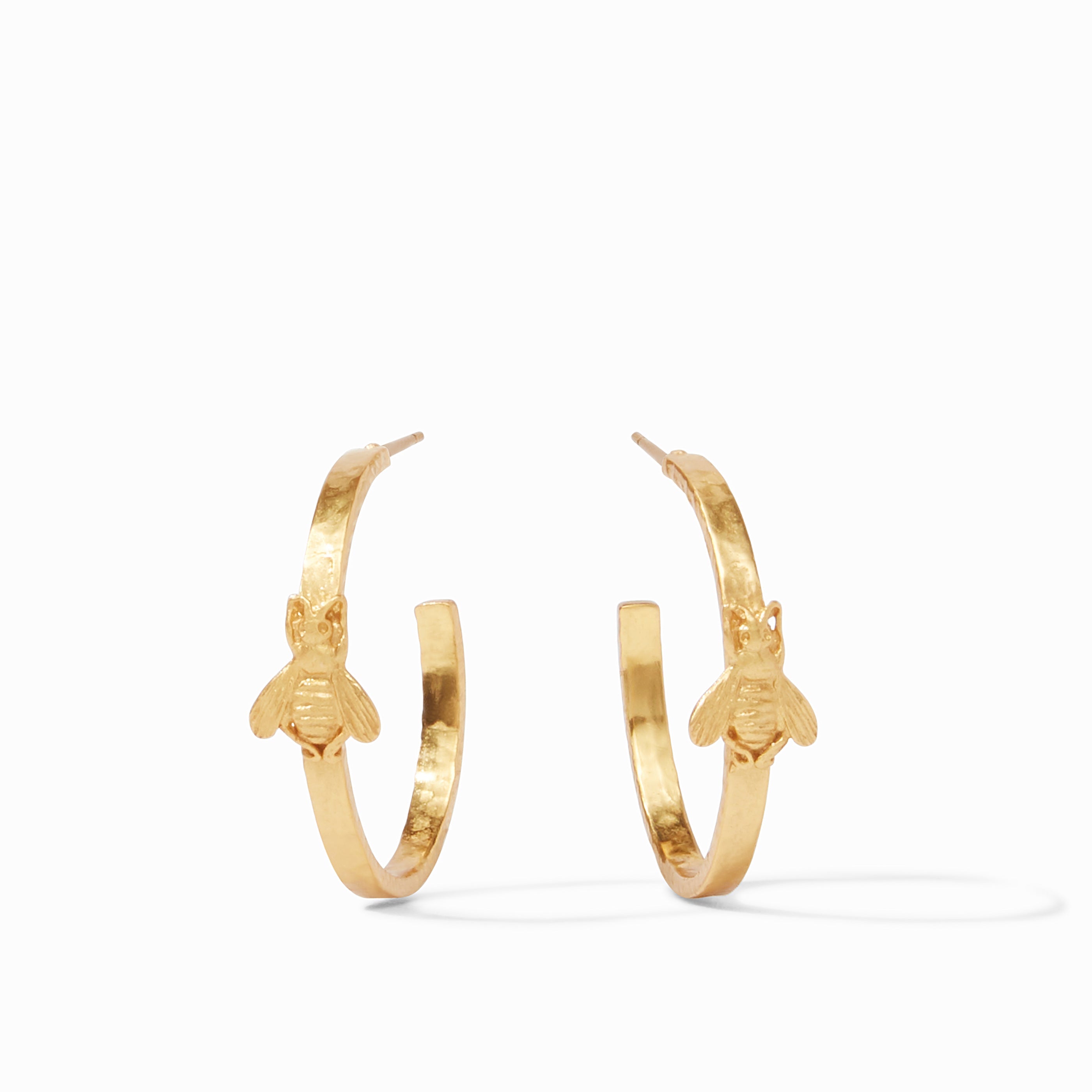Gold Honeybee Hoop & Charm Earring, Assorted Colors
