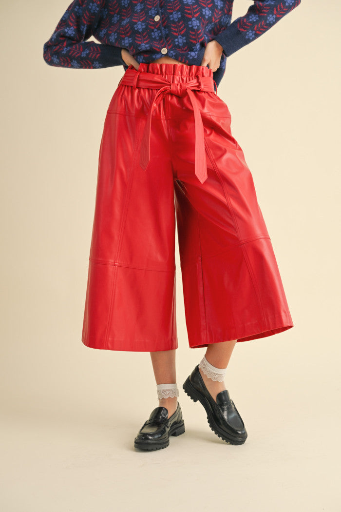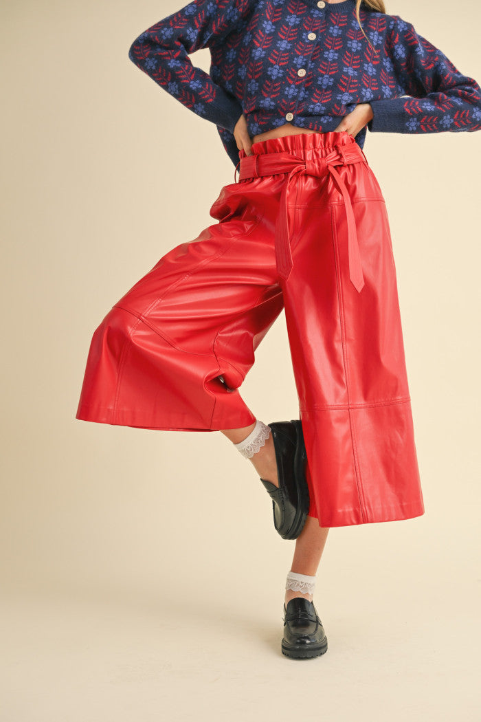 Talk This Way Faux Red Leather Paperboy Waist Pants