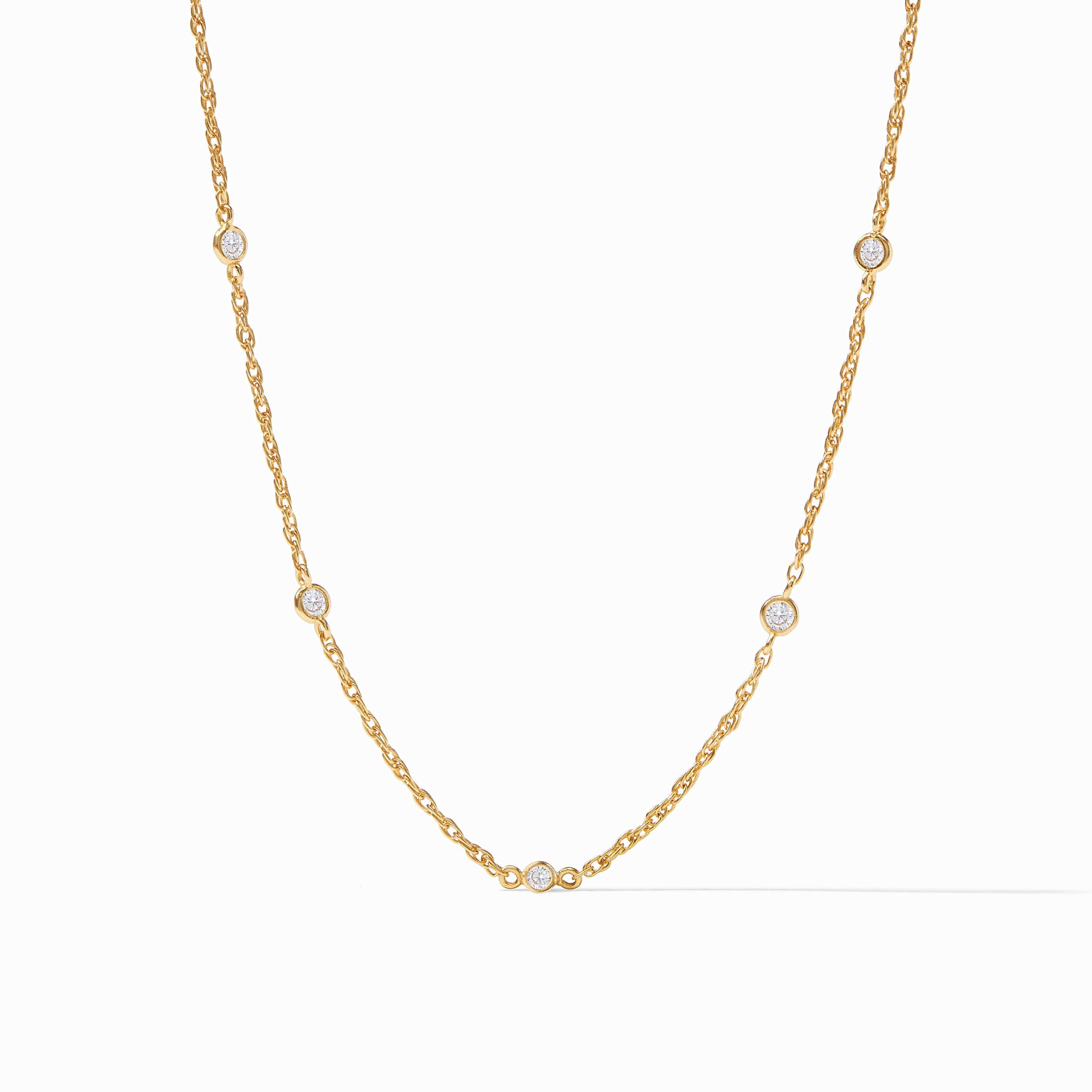 Gold Celeste Delicate Station Necklace, Cubic Zirconia