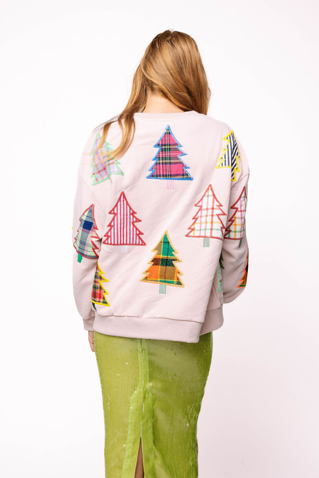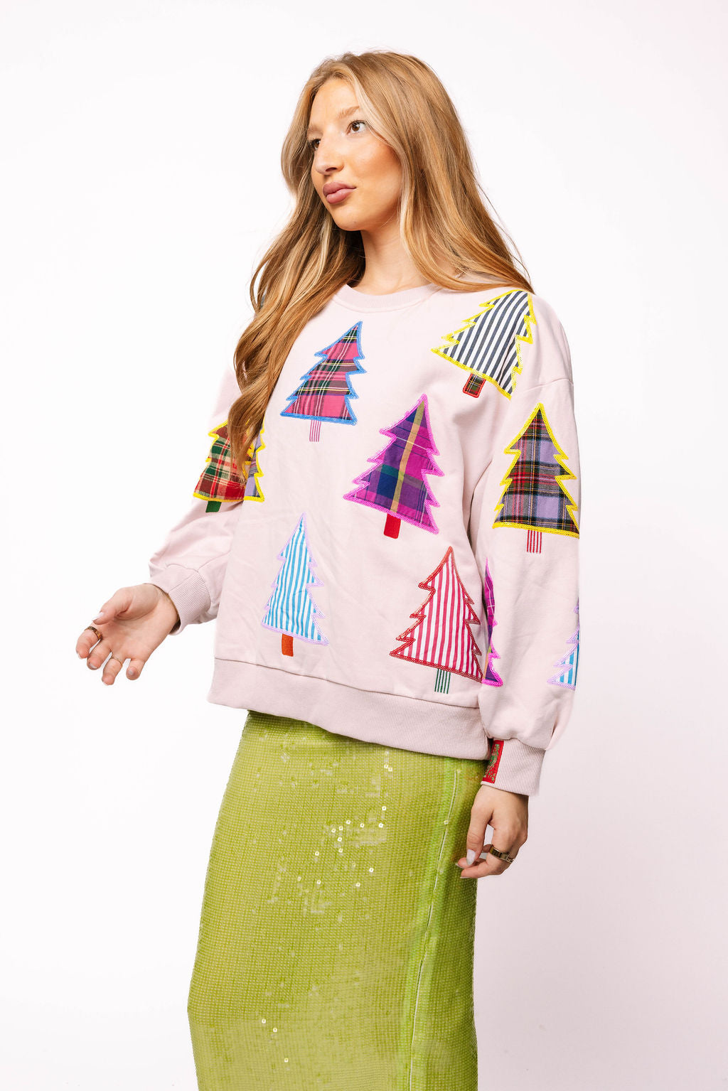 Light Pink Multi Plaid & Stripe Christmas Tree Sweatshirt