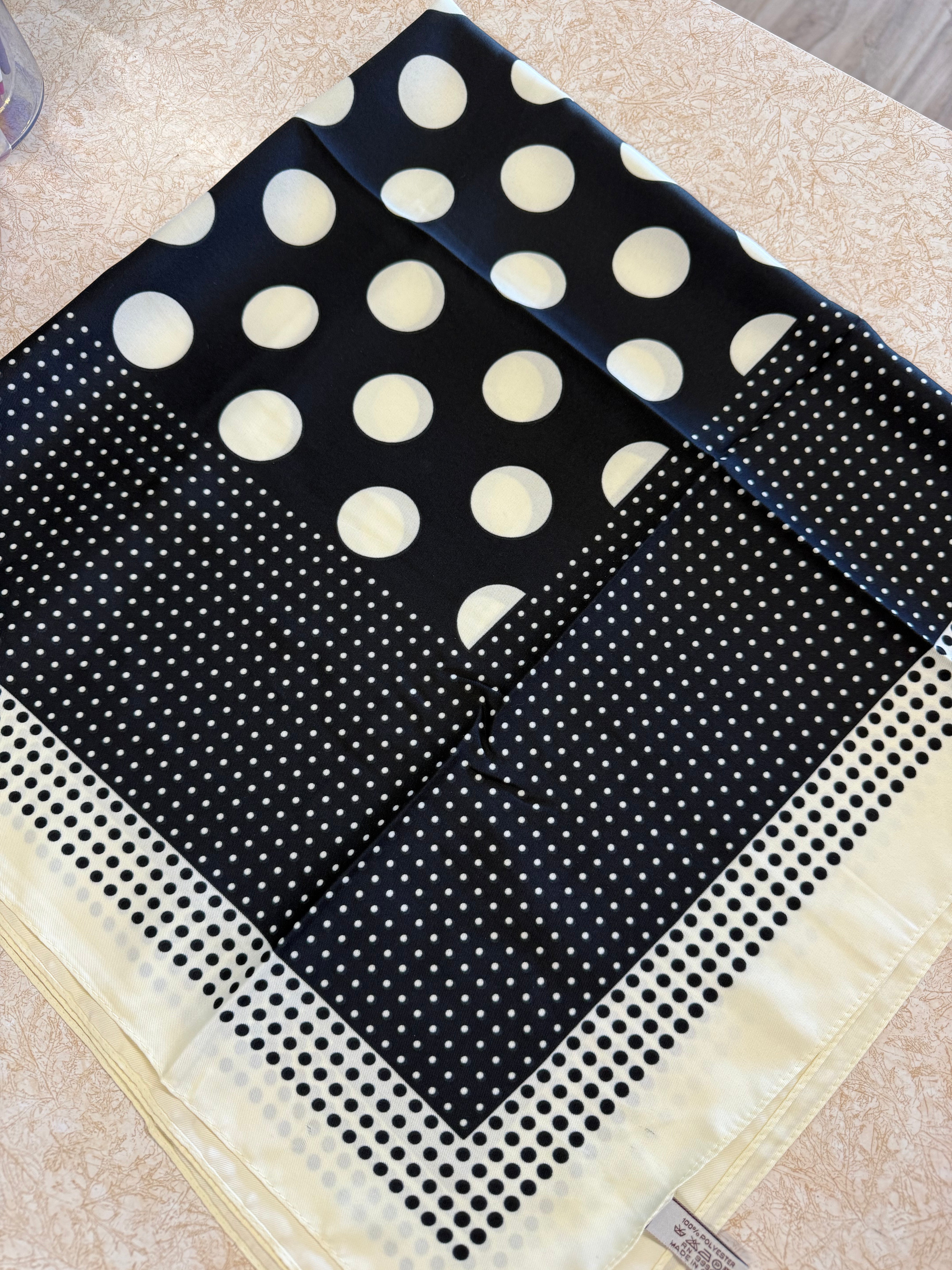 Polka Dot Silk Twill Scarf, Black/Ivory