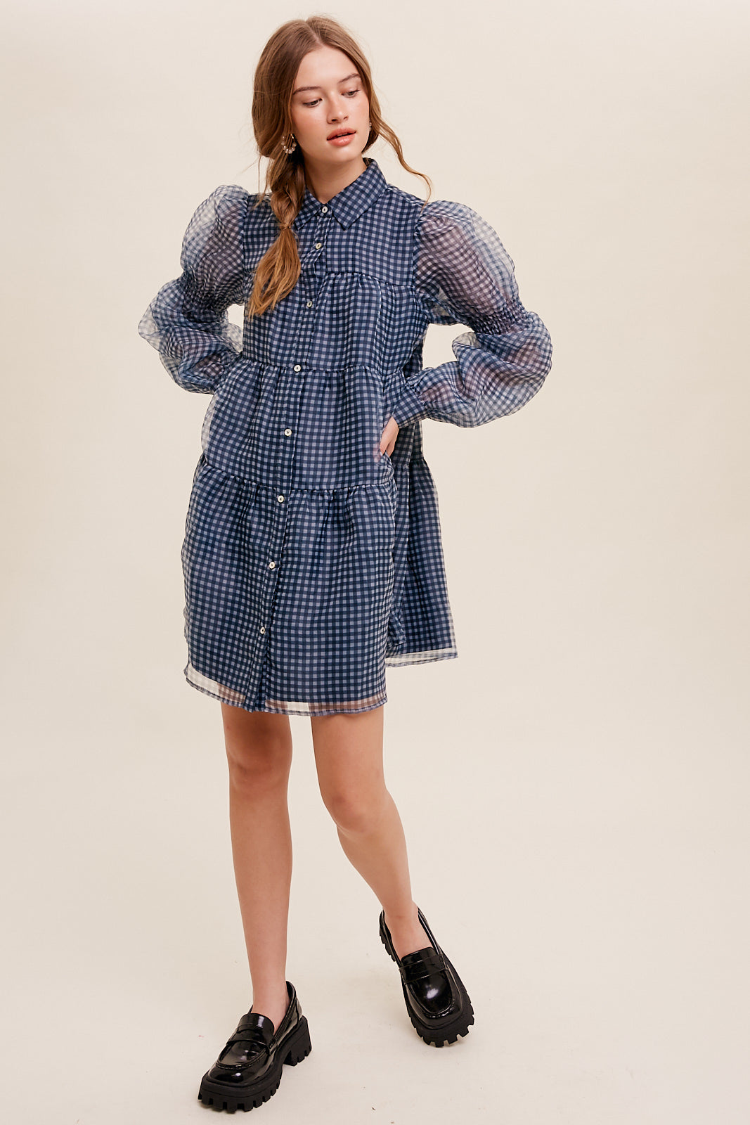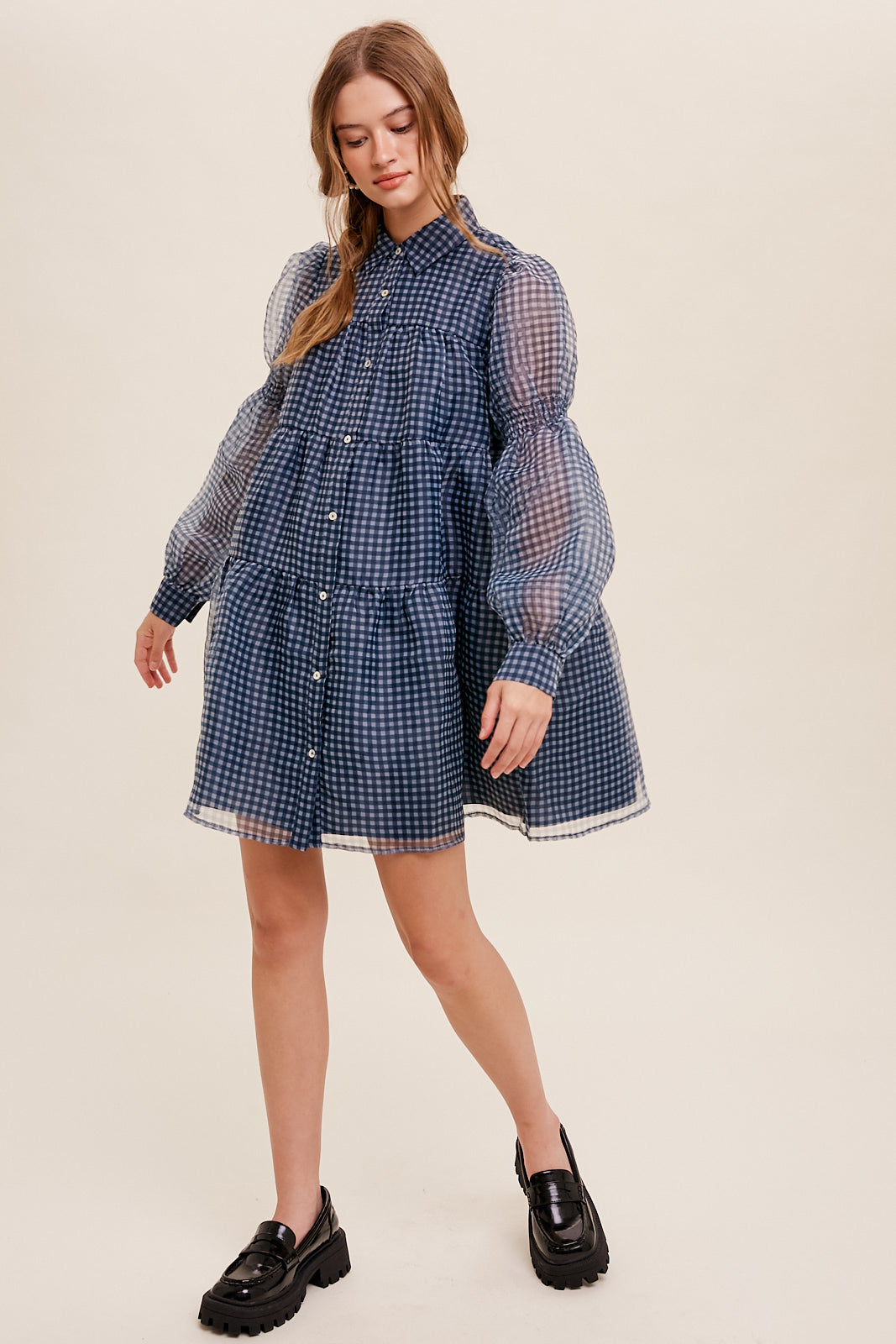 SISTERS | Throw Tinsel Plaid Print Button down Tiered Mini Dress