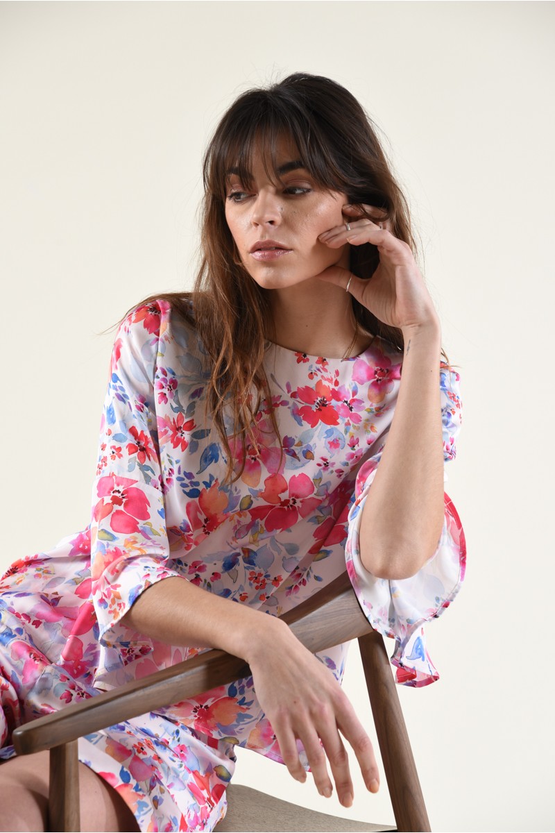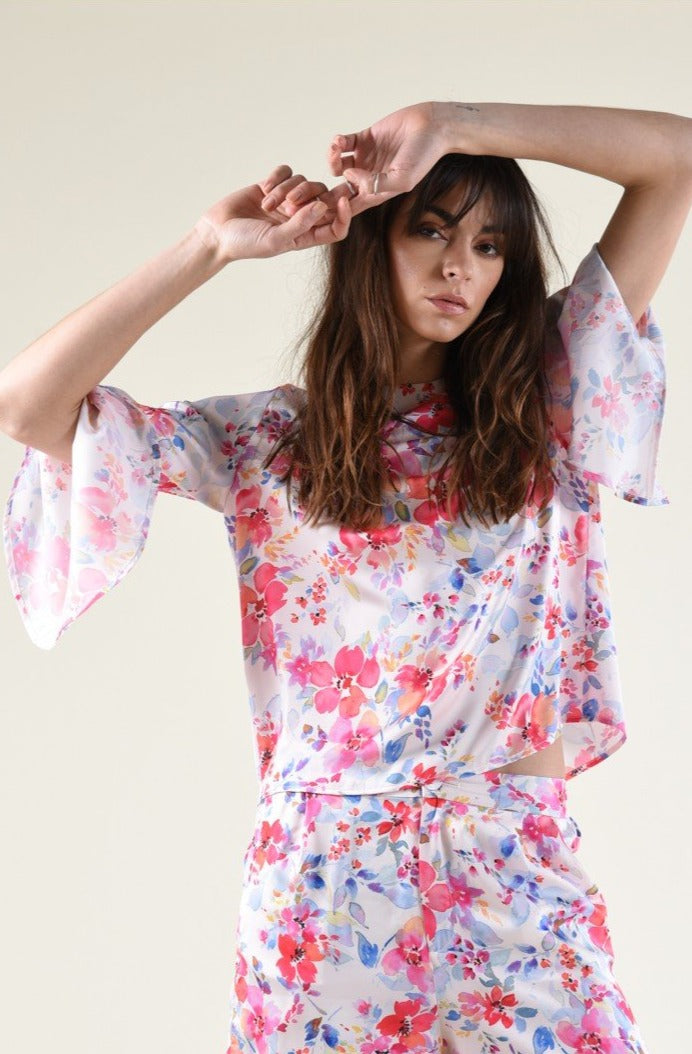 Molly Bracken | Wide Printed Blouse, Watercolor Florals