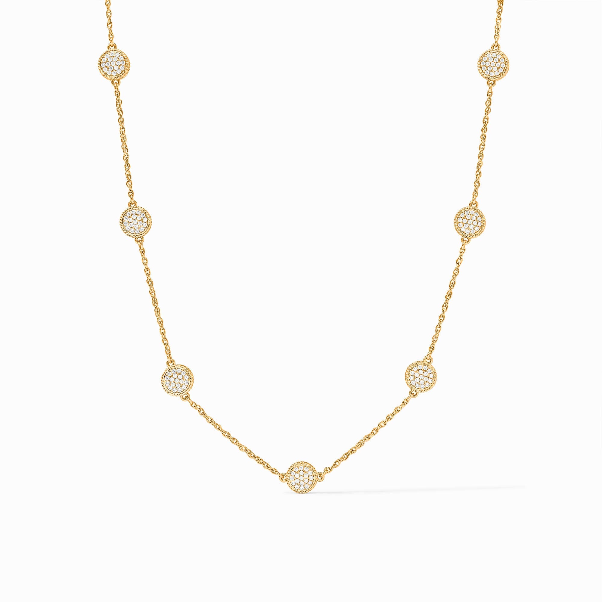Gold Windsor Delicate Station Necklace, Pave Cubic Zirconia
